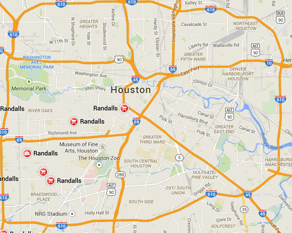 Map of HEB stores follows below. The one store in the UH/TSU area is south of Old Spanish Trail – the “safe(r)” area.