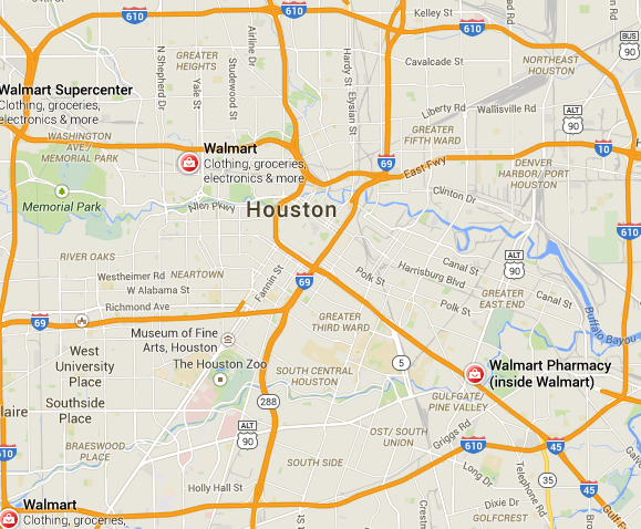 There is also a problem of food deserts in the United States. A food desert is simply an area without a grocery store and/or ready access to fresh, healthy food. Here is a Google Earth Map that shows the location of Kroger grocery stories in Houston, Texas. Notice there are none near the University of Houston / Texas Southern University area – the triangle shaped area toward the bottom of the loop.